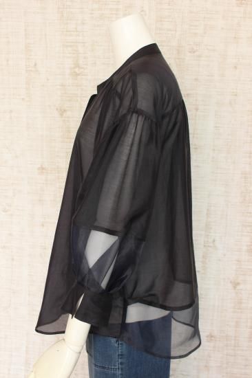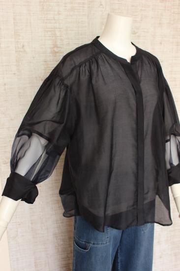 (50%オフ)ROBE ローブ BLUE FRONCE オーガンジー切り替え前開き比翼仕立てブラウス