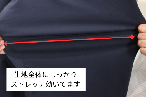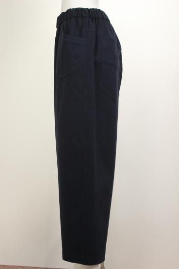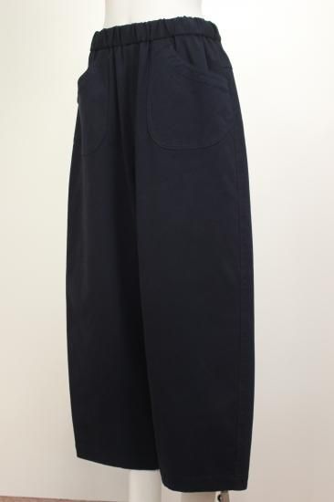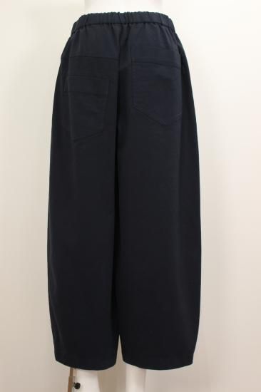 温もりを感じる綿とポリウレタンの生地。ストレッチしっかり効いております。スッキリ感のある、太くなり過ぎないキレイなバルーンシルエットが魅力。