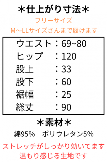 ウエスト69~80 ヒップ120 股上33 股下60 裾幅25 総丈90