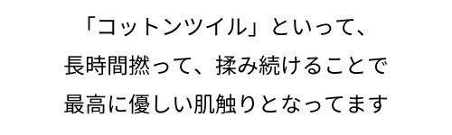 長時間撚って、揉み上げることで優しい肌触りを作りだしたプレミアム素材!