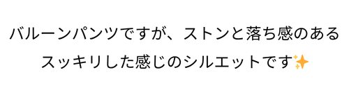 「コットンツイル」という長時間撚って、揉み続けることで優しい肌触りを作り出したプレミアム素材です。軽くて最高の履き心地!スッキリ見えするバルーンシルエットです。秋コーデ楽しんで頂けます。
