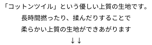 長時間撚って、揉み上げることで優しい肌触りを作りだしたプレミアム素材!