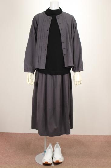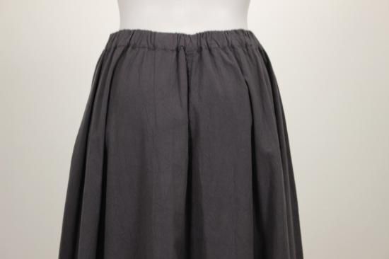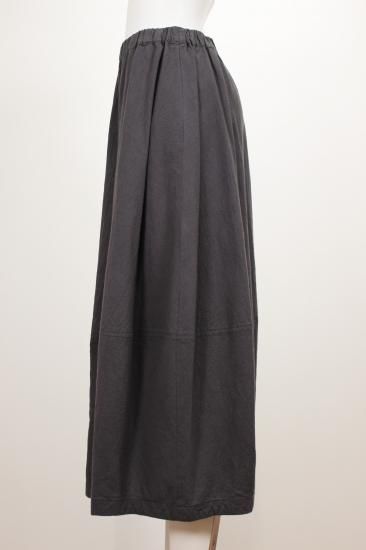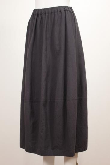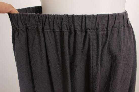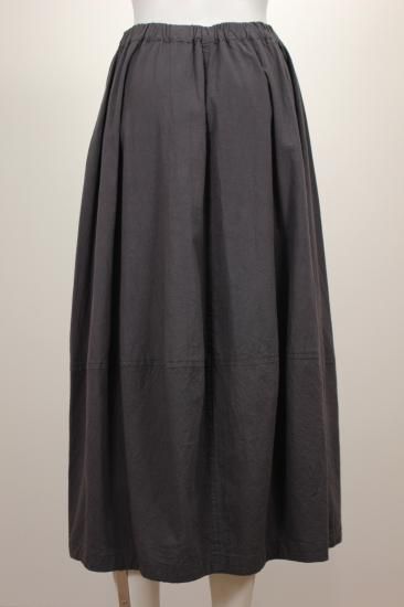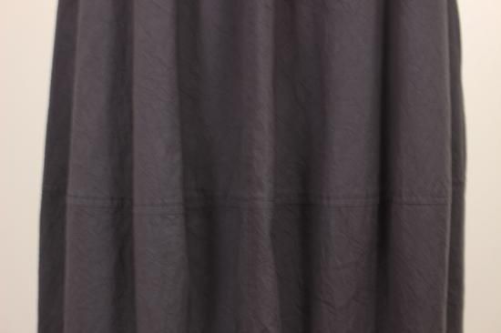 シワ加工の優しい生地です。季節長く履いて頂けます。切り替え部分から裾にかけて細くなったバルーンシルエット。可愛いシルエットのスカートです。