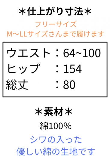 *仕上がり寸法*ウエスト64~100 ヒップ154 総丈80