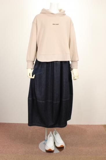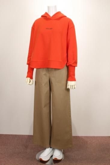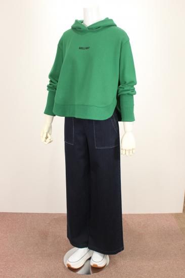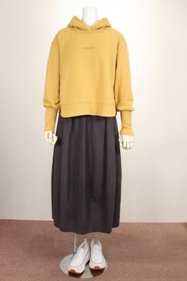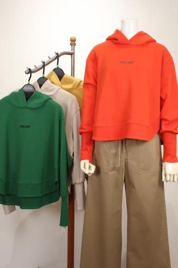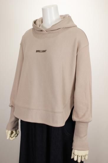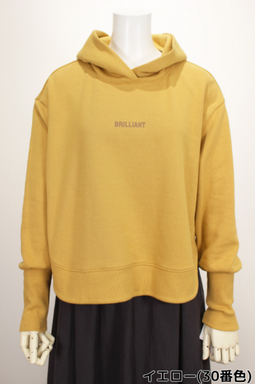 軽やかさ、若々しさを感じる明るいスウェットパーカーです。バスト広めでショート丈。ワイド系のボトムと合わせると可愛く決まります。肌触りがよく、きめ細かい上質なスウェット生地です。