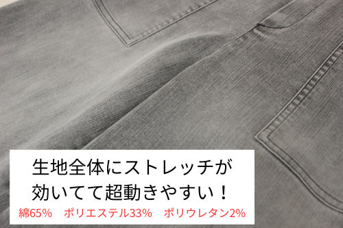 デニム部分:綿65% ポリエステル33% ポリウレタン2%