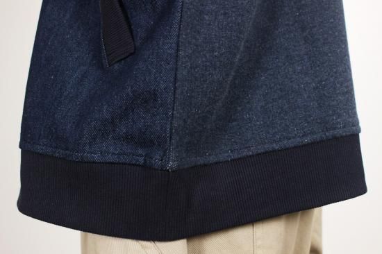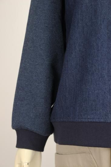 前ポケット左右 衿リブ幅4cm 袖口リブ幅4.5cm 裾リブ幅5cm ポケット口リブ幅2.5cm 前身デニム 袖、後身スウェット
