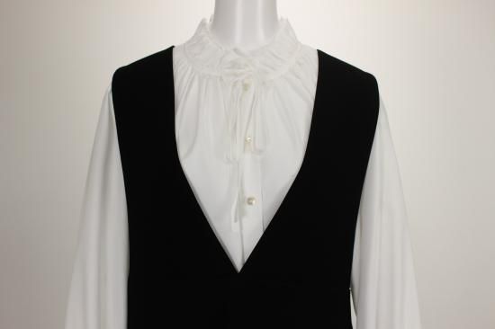フェミニン系のブラウスと合わせるとオシャレに決まります。V開きのデザインが縦ラインのキレイに見せてくれて、細見えが期待できます。