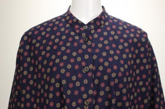 程よい渋さと可愛さの花柄ブラウスです。秋らしいお色がコーデに馴染みます。首元すっきりスタンドカラーです。羽織ブラウスとして着て頂くと、いっきにコーデが華やかになります。