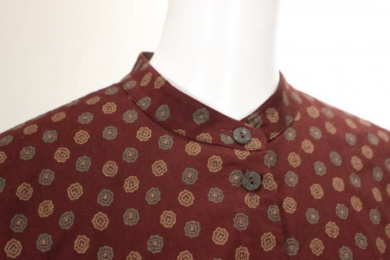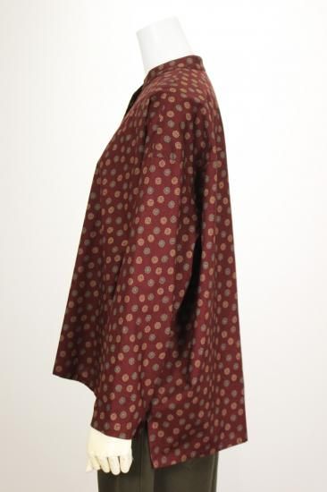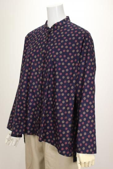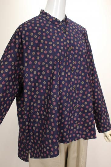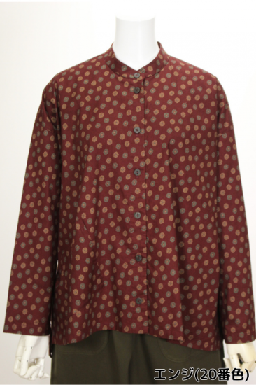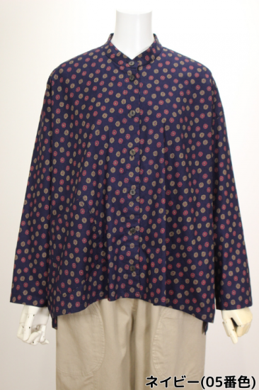 イフ クラージュ 和風小花柄の秋ブラウス スタンドネック 前開き