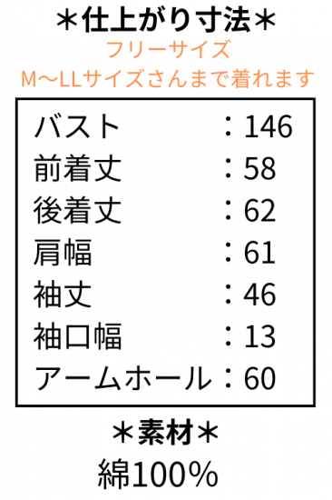 バスト146 着丈前58 後62 肩幅61 袖丈46 袖口幅13 アームホール60
