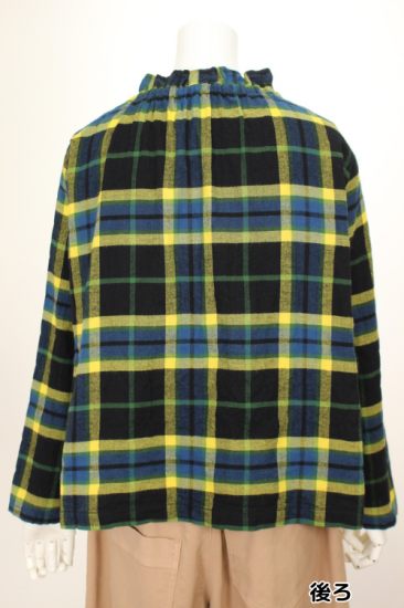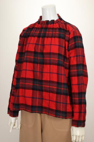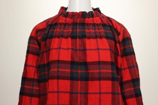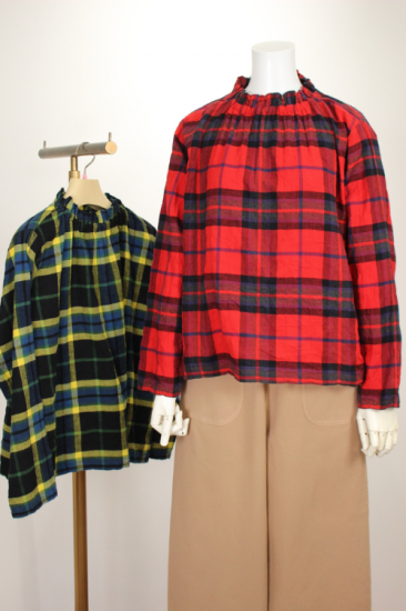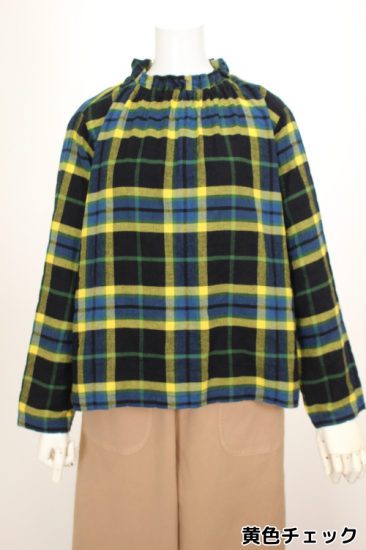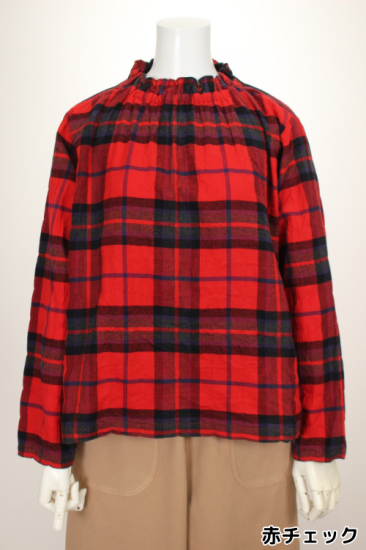 アトリエパス pas a' pas 衿元ギャザーのチェックブラウス プルオーバー
