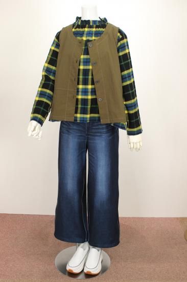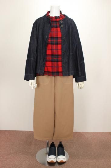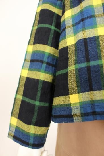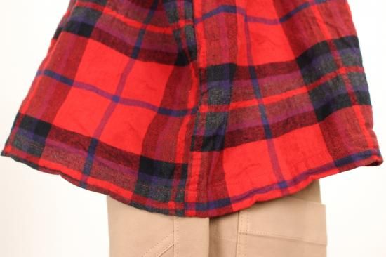 温もり感じる綿生地です。明るい大きめチェックが地味になりがちな秋冬コーデを盛り上げます。バストゆったりシルエット。体系気にせず楽に着て頂けます。
