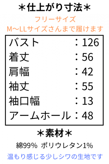 バスト:126 着丈:56 肩幅:42 袖丈:55 袖口幅:13 アームホール:48
