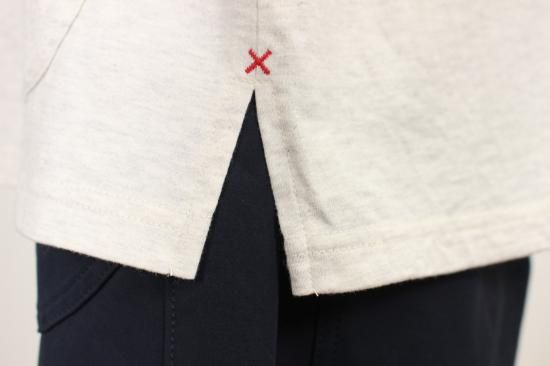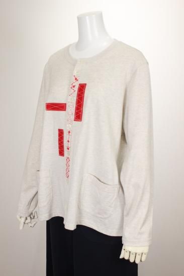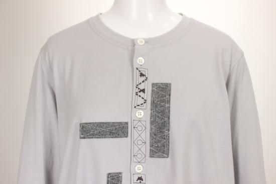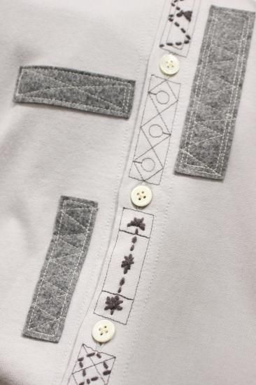 衿ぐり1.5cm切り替え 前ボタン7つ 脇裾スリット6.5cm 刺しゅうとフェルト布たたきつけ