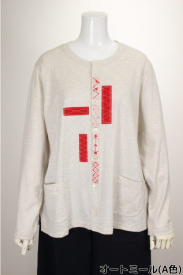 コズ CO's フェルト刺しゅうの綿カーディガン