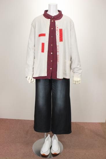 フェルト刺しゅう部分が可愛く羽織コーデを盛り上げてくれます。初秋の軽めの羽織にピッタリ!