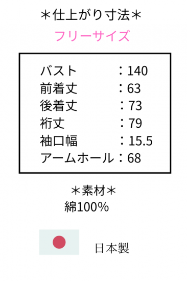 *仕上がり寸法*バスト140 着丈前63後73 裄丈79 袖口幅15.5 アームホール68