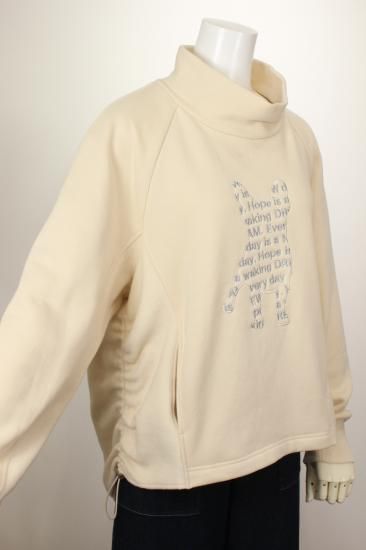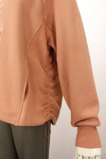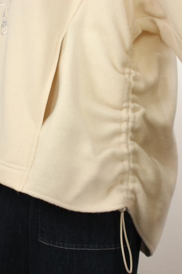 ぬくもり感じる綿100%の裏起毛生地です。サイドのドローコードを調節して可愛さをプラスできます。前身頃のワンちゃん刺しゅうがPOPでカジュアルな雰囲気を演出!