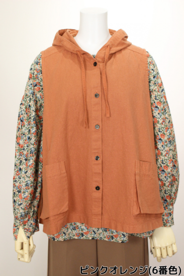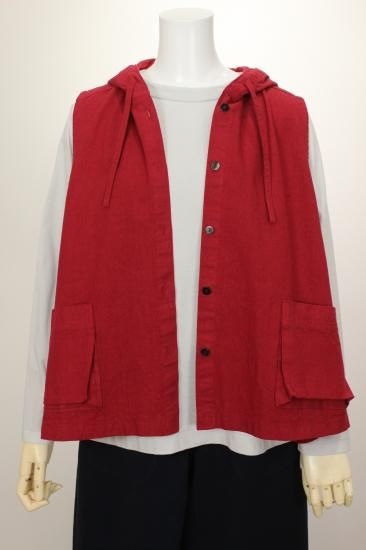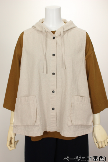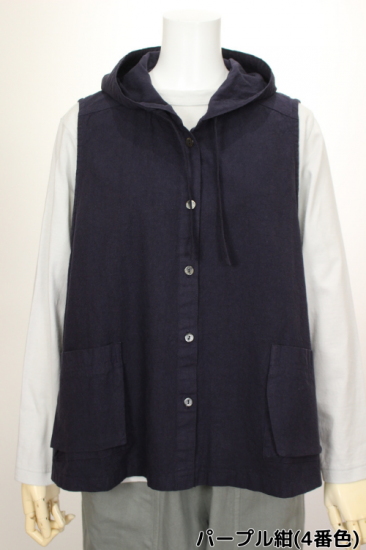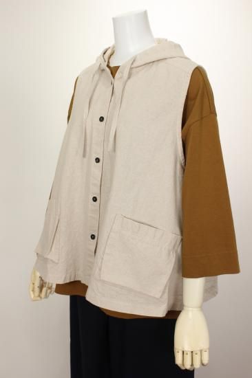 DAVO-DAVO ダボダボ 綿麻の前開きベスト フード付き