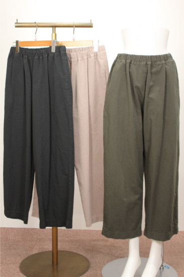 やわらかく、しっかりした綿100%の生地。シンプルにストンと縦ラインを強調してくれます。年間通して長く履いて頂ける生地感です。