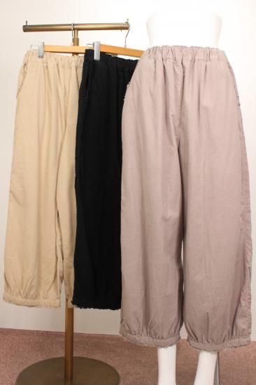 DAVO-DAVO ダボダボ コーデュロイ風のバルーンパンツ 裾先フリンジ風フリルのデザイン