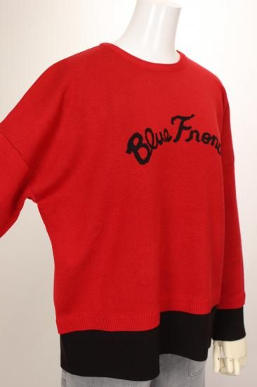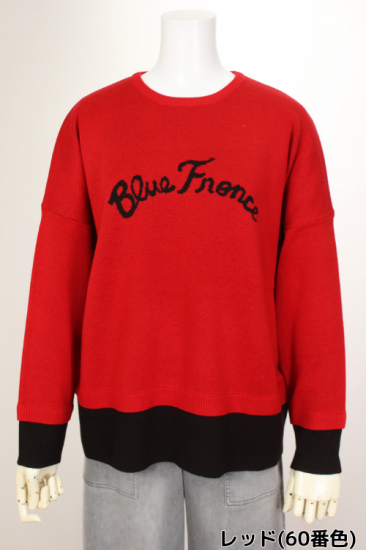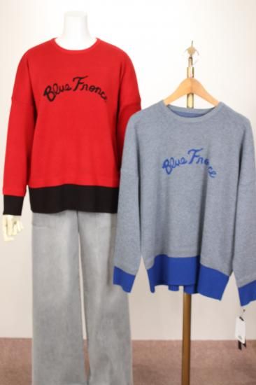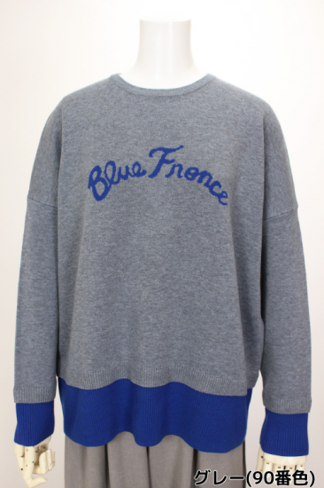 ROBE ローブ BLUE FRONCE 袖口、裾配色ニットプルオーバー