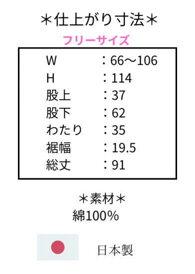 *仕上がり寸法*ウエスト66~106 ヒップ114 股上37 股下62 渡り幅35 裾幅19.5 総丈91