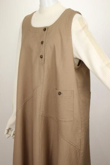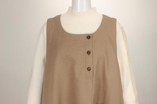 綿100%の少し張りのある秋から冬に調度イイ生地で出来てます。前ボタン3個でとても着やすいです。切り替えやポケットデザイン可愛く楽しめるデザインです。右脇ポケット 左貼り付けポケット 左後ポケット 前ボタン3つ