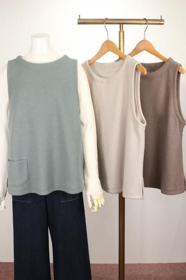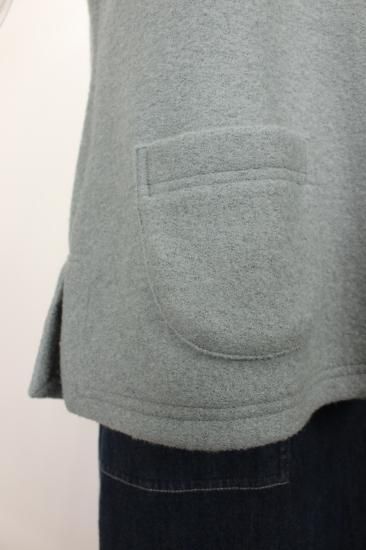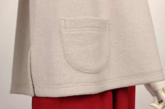衿ぐりのカーブが着ると可愛いです。毛にナイロン混なので取り扱いが楽です。軽くて暖かお色合わせでおしゃれ楽しめます。寒い季節はコートやジャケットインに便利です。右前裾ポケット 脇裾スリット10cm