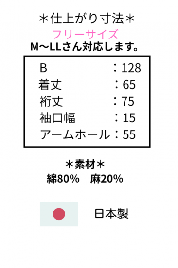*仕上がり寸法*バスト128 着丈65 裄丈75 袖口幅15 アームホール55