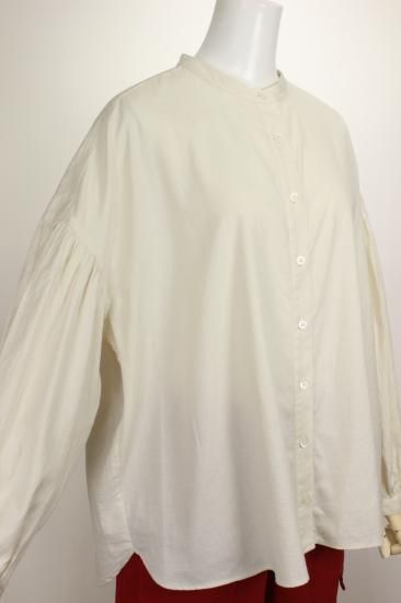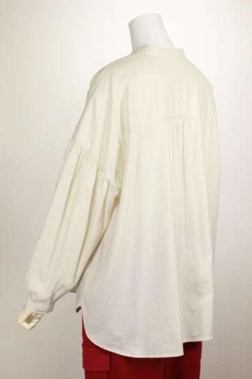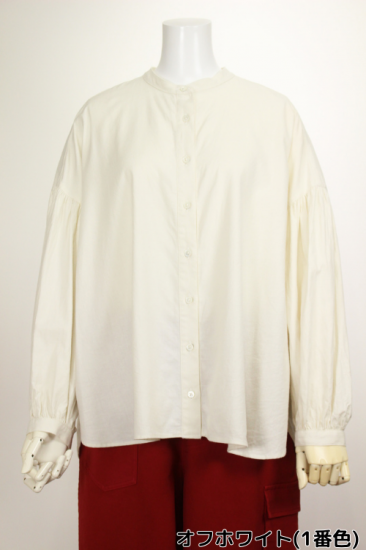 +2(プラスツー) マオカラー袖ギャザー前開きブラウス
