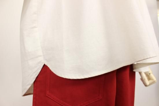 袖口カフス幅2.5cm 脇裾ラウンドスリット9~14cm 前ボタン8つ
