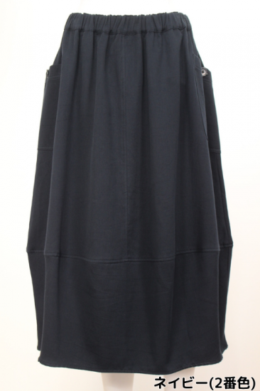 +2(プラスツー) コクーンシルエットのスカート ウエスト総ゴム 綿100%