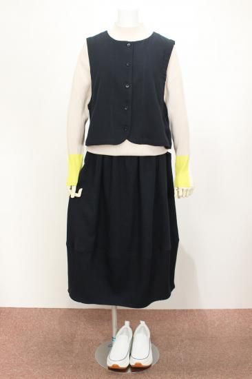 とても柔らかく、肌触りの良い生地です。シンプルさと可愛さを感じるスカートです。切替部分から少し細くなったコクーンシルエットが可愛いポイントです。同じ生地のベストとセットアップで着ると可愛くオシャレです。