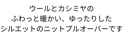 ふわっと優しく、暖かいウールとカシミヤのニットです。ゆったり楽に着て頂けるシルエット。お首と袖の配色がオシャレ。首周りを優しくカバーしてくれるハイネックのデザインが魅力。