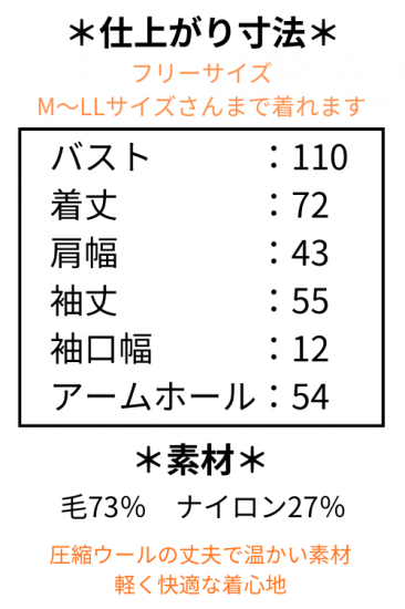 バスト:110 着丈:72 肩幅:43 袖丈:55 袖口幅:12 アームホール:54