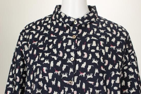 アトリエパス pas a' pas 可愛いネコちゃん柄の配色ブラウス 綿ビエラ生地