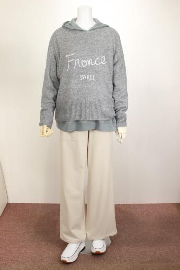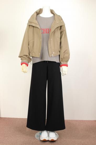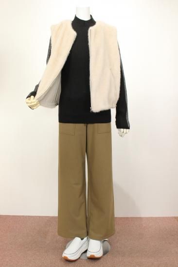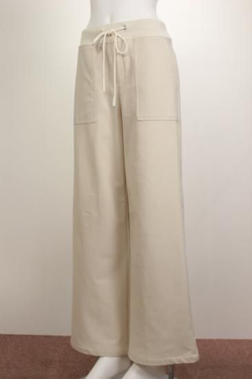 ROBE ローブ BLUE FRONCE ウエストリブの裏起毛ワイドストレートパンツ ウエストひも付き ストレッチ素材
