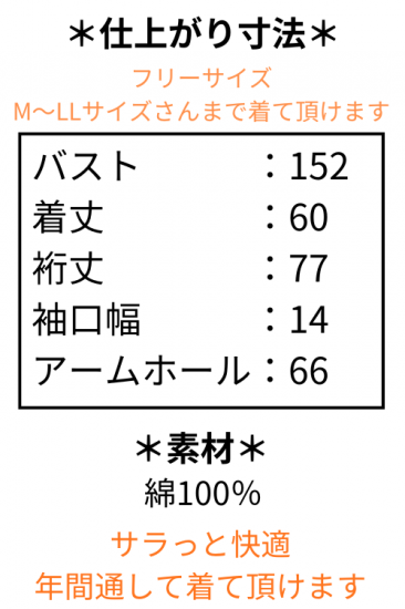 バスト:152 着丈:60 裄丈:77 袖口幅:14 アームホール:66