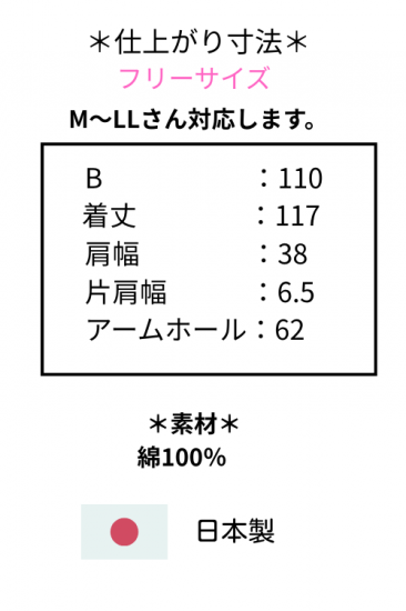 *仕上がり寸法*バスト110 着丈117 肩幅38 肩部分幅6.5 アームホール62