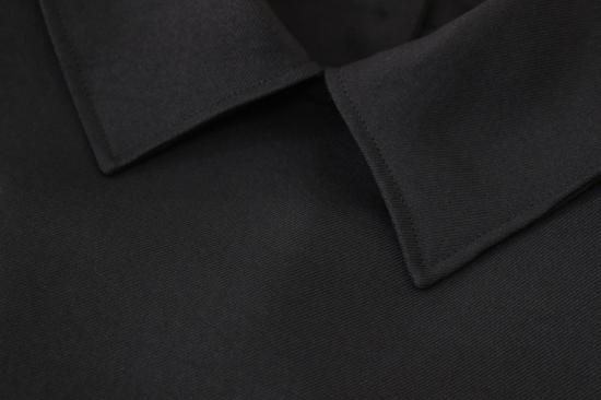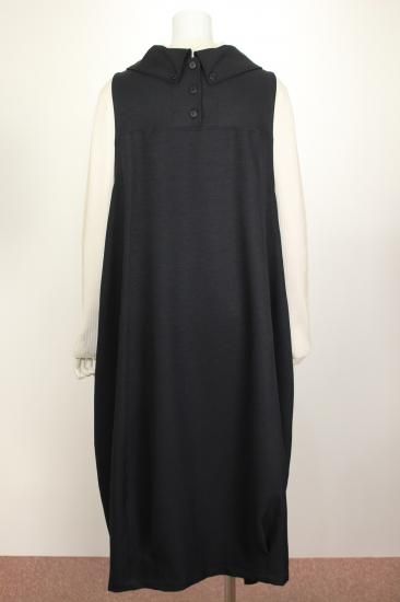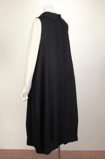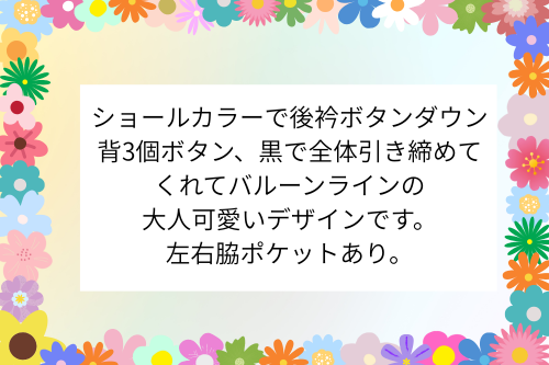 ショールカラーで後衿ボタンダウン背3個ボタン、黒で全体引き締めてくれてバルーンラインの大人可愛いデザインです。左右脇ポケットあり。