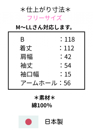 バスト118 着丈112 肩幅42 袖丈54 袖口幅15 アームホール56