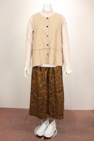 DAVO-DAVO ダボダボ 秋冬の花柄ワイドパンツ ウエスト総ゴム