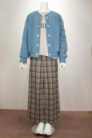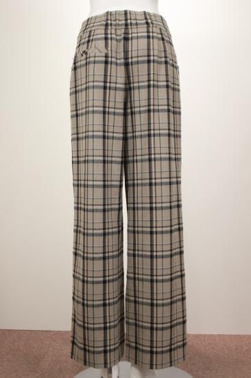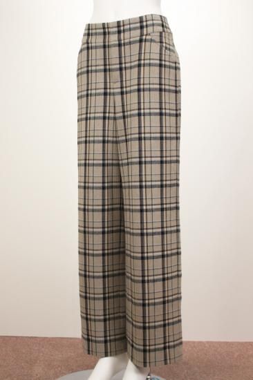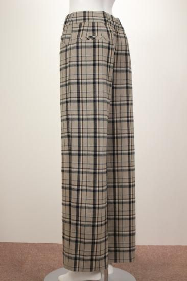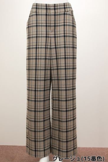少し起毛した暖かいワイドストレートパンツです。大きめチェックがコーディネートを盛り上げてくれます。ストンとキレイな縦ラインを作ってくれるパンツです。