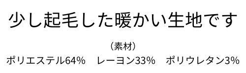 ポリエステル64% レーヨン33% ポリウレタン3%