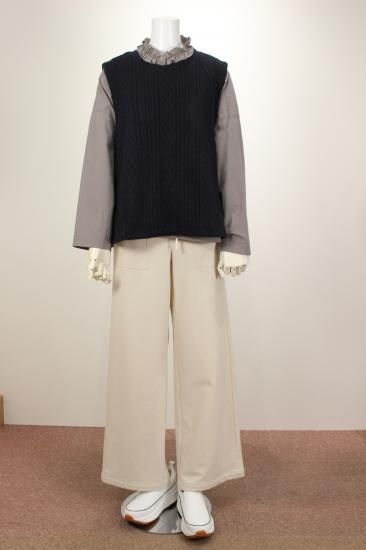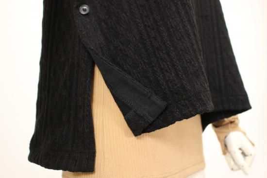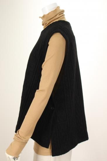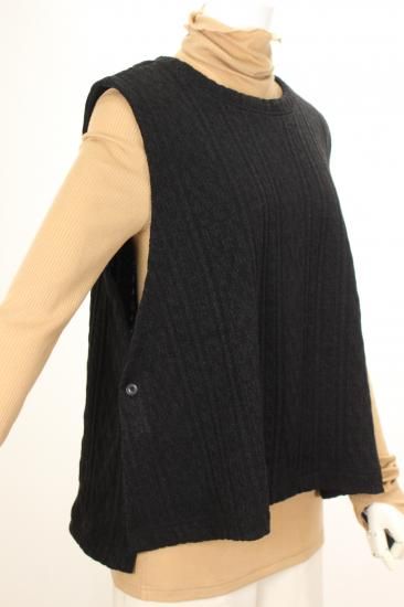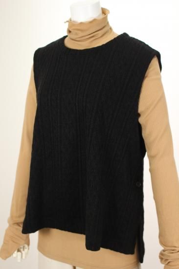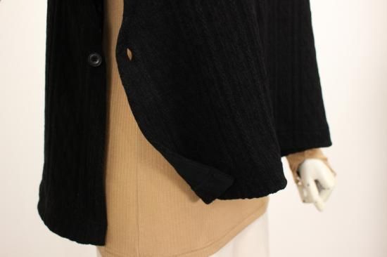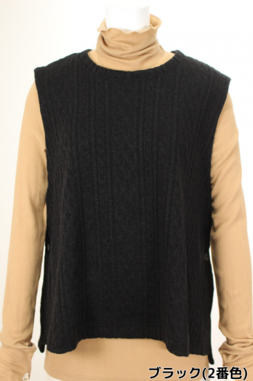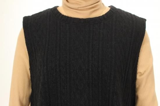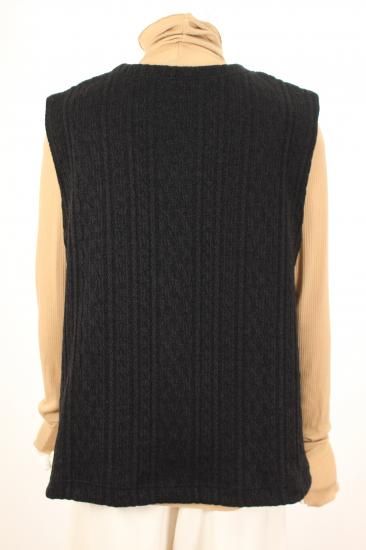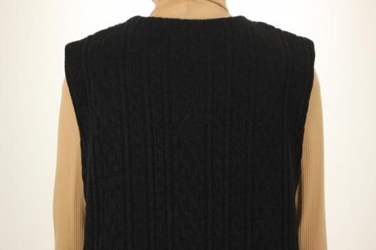 コーデにアクセントが欲しい時におススメ!編み柄がカジュアルだけど上品な雰囲気を出してくれます。ゆったりしたデザインです。黒は引き締め効果もあります。