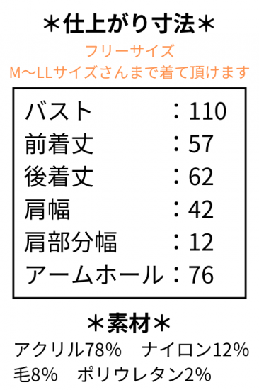 バスト110 着丈前57後62 肩幅42 肩部分幅12 アームホール76