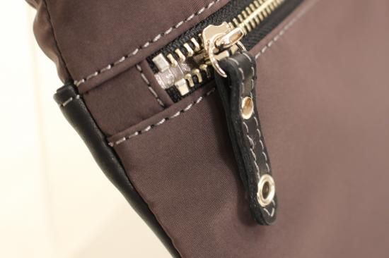 日帰りのお出かけにピッタリのサイズ感です。普段使いにもおススメ。丈夫で軽いナイロン生地と牛革の切り替えデザイン。コーディネートに合わせやすいブラックとブラウンのお色です。