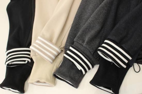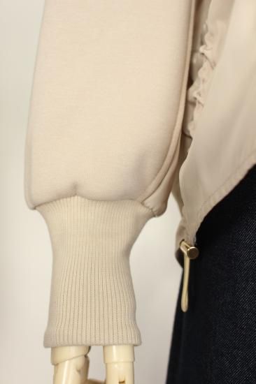 前ポケット2つ 袖口リブ幅9cm 袖口折り返しOK 袖底、脇異素材使い